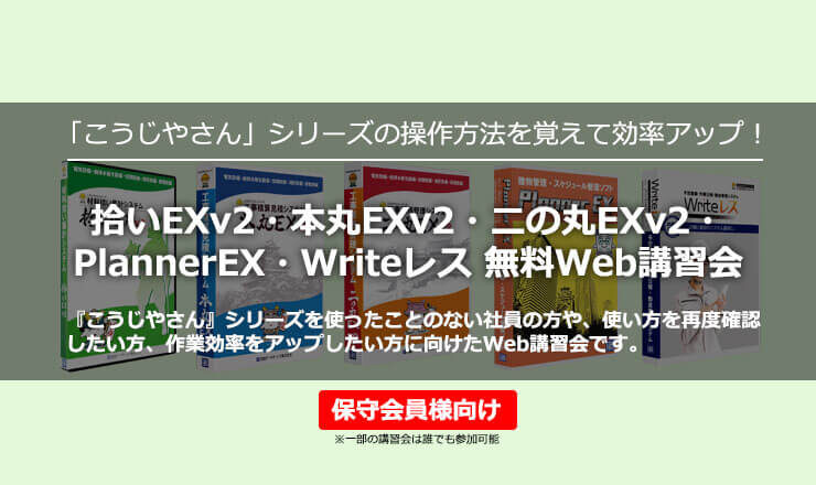 「拾いEXv2」「本丸EXv2」「二の丸EXv2」「PlannerEX」のスキルアップを目的とした無料Web講習会です。特定の機能についての解説や、...