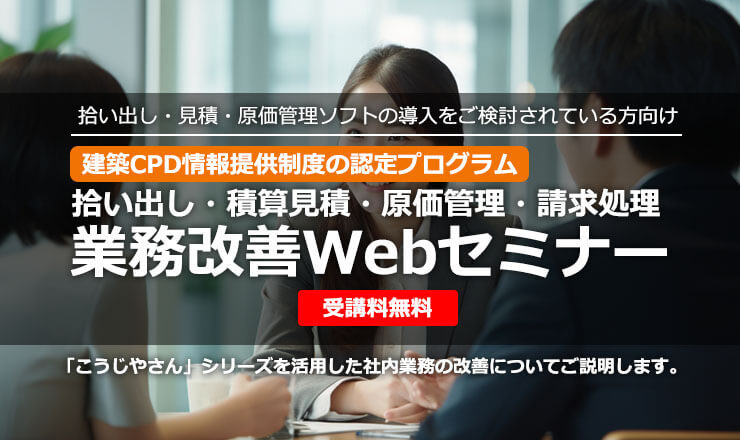 このセミナーは、これから「拾いEXv2」、「本丸EXv2」、「二の丸EXv2」の購入を検討されているお客様向けのセミナーで、「拾い出し」や「積算見積...