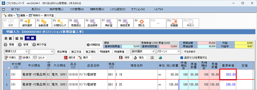 【便利機能】見積明細画面からの資材マスタの登録・更新