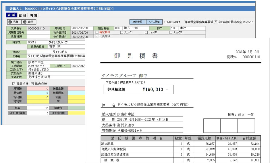 工事積算見積システム「本丸EXv2」オプション「消防点検見積」