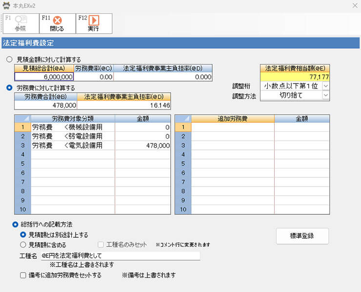 1、「労務費に対して計算する」を選択した場合の「労務費合計」について